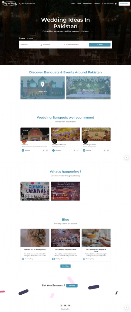 My Wed Ideas is listing website developed on WordPress with listing functionality on Wedding Banquets